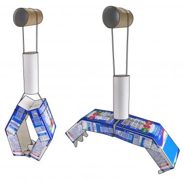 牛乳パックとトイレットペーパーの芯を使って、いろいろな物をつかむマシンを作ります。輪ゴムの動力を使ったシンプルなしかけで、クレーンゲームのような動きを楽しみます。自分が思うようなクレーンの動きができるように、いろいろ改良を重ねて完成度を上げましょう。