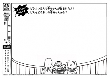 枠の中にシンプルな絵が描いてあります。「お題」に合わせてイメージを膨らませて絵を完成させましょう。色えんぴつで彩色すると、さらに子どもの個性が浮かび上がります。