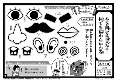 ランドセルや筆箱、自分の顔などにパーツを貼り付けて、身の回りのものをどこでも福わらいにしちゃおう!