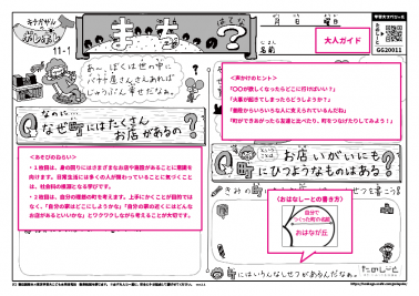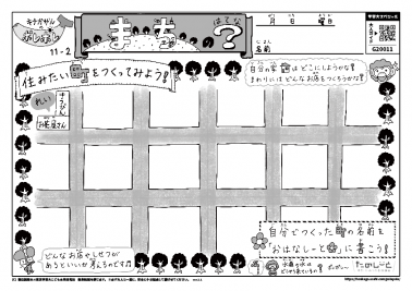 キナガザルくんは、町に大好きなバナナ屋さんさえあれば幸せだと思っているけど、みんなはどうかな。町にどんな店や施設があればいいと思う? 自分が住みたいと思う町を描いてみよう!