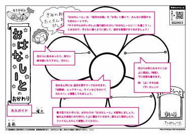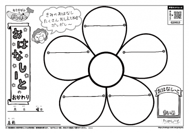 「ポレポレ」1回目に、自分の“お話”を“お花”に書き込んでいく「おはなしーと」というシートがあります。「ポレポレ」に取り組んだ結果を書き込んでいくと、その子の自己紹介が増えていきます。足りなくなったら、「おはなしーと おかわり」をお使いください。