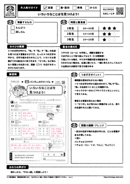 9つの文字の中から、「色」や「花」や「鳥」の名前を見つけ出す言葉遊びです。たった9つの文字の中から、文字を組み合わせることで、いろいろな言葉ができる面白さに気づきます。「さつき」など知らない言葉との出会いには、語彙(ごい)を広げるきっかけにもなります。
