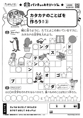 簡単な言葉パズルです。挿絵をヒントにしてマスに当てはまる言葉を入れ、パズルを完成させましょう。知らない言葉があったら、語彙(ごい)を広げるチャンス! 最後に、〇と☆のそれぞれの文字を並べ替えると、子どもに人気の食べものの名前になります。