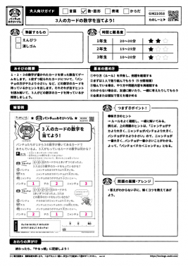 1・2・3の数字が書かれたカードを使った数当てゲームをします。1枚ずつ配られたカードについて、「パンチョの方がチカより小さい」など、どの数字のカードを持っているかヒントを出します。それぞれが出すヒントを読み解いて、3人がどの数字のカードを持っているか推理しましょう。