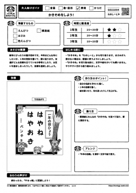 新年にぴったりの書き初めです。今年はどんな年にしたいか、1年の抱負を書いて壁に貼ります。友達がどんな目標を立てているか参考にしたり、お互いを励まし合ったりして、目標を達成しましょう。