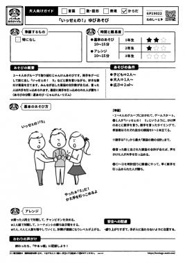2~4人のグループで取り組むじゃんけんあそびです。両手をグーにして前に出し「いっせぇの! 5」などと数を言いながら、好きな数だけ親指を立てます。みんなが出した親指の合計数が合えば、言った人は片手を引っ込められます。最初に両手を引っ込められた人が勝ち!