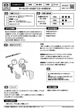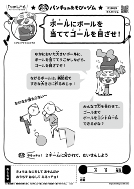 柔らかい大きめのボールに新聞紙で作ったボールを当てながらゴールを目指すゲームです。ゴールは段ボールやフラフープなどで作ったものでOK。ボールにボールを当てるのは思った以上に難しい。うまくボールをコントロールできるかな?