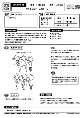 3人1組でグループになり、2人が両端に向かい合って立ち、残りの1人が間に立って、シーソーのように前後に倒れる動きをします。両端の2人は真ん中の人が倒れないようにしっかり支えます。倒れそうで倒れない、不思議な感覚を楽しみましょう。