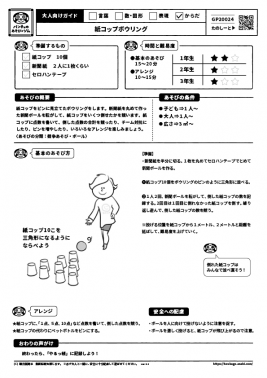 紙コップをピンに見立てたボウリングをします。新聞紙を丸めて作った新聞ボールを転がして、紙コップをいくつ倒せたかを競います。紙コップに点数を書いて、倒した点数の合計を競ったり、チーム対抗にしたり、ピンを増やしたり、いろいろなアレンジを楽しみましょう。