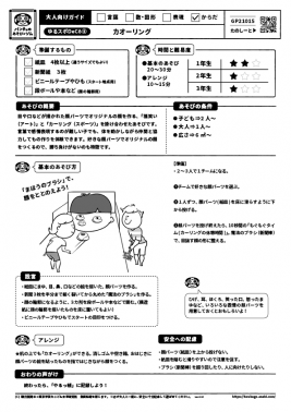 目や口などが描かれた顔パーツでオリジナルの顔を作る、「福笑い(アート)」と「カーリング(スポーツ)」を掛け合わせたあそびです。言葉で感情表現するのが難しい子でも、体を動かしながら仲間と協力してもの作りを体験できます。好きな顔パーツでオリジナルの顔をつくるので、勝ち負けがないのも特徴です。