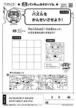 9分割、16分割、20分割のキャラクターのパズルを完成させる図形あそびです。どのピースがどのピースとつながるのか、模様をよく観察して組み合わせます。パズルのピー…